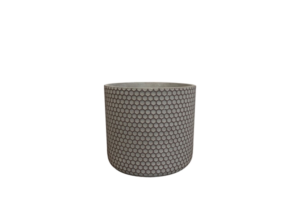 Handgefertigt aus langlebigem Zement, bietet dieser Blumentopf eine schöne Kombination aus Eleganz und Robustheit. Die zylindrische Form, die mit einem grafischen Muster verziert ist, verleiht deiner Einrichtung einen modernen Touch.