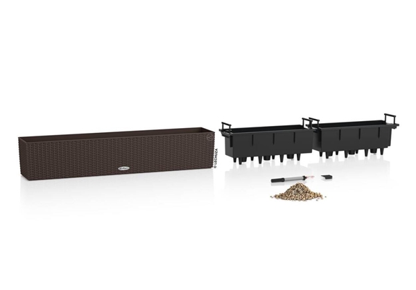 Der Balconera Cottage ist aus hochwertigem, wetterfestem Kunststoff und daher leicht zu transportieren. Und das Lechuza-Bewässerungssystem übernimmt wie gewohnt die optimale Wasserversorgung der Pflanzen. Die herausnehmbaren Pflanzeinsätze mit versenkbaren Griffen können ganz einfach auf dem Boden oder einem Tisch bepflanzt und im Anschluss in die bereits montierten Kästen eingesetzt werden. Mit der moderne Flechtstruktur und der geraden Form passt Balconera garantiert auch auf ihren Balkon.