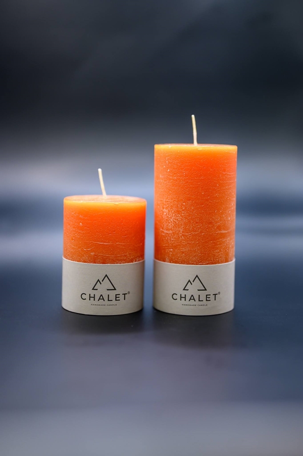 - Stumpenkerze Chalet orange D:7 H:10 cm