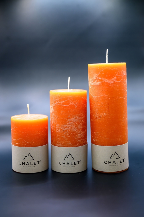- Stumpenkerze Chalet orange D:5 H:15 cm