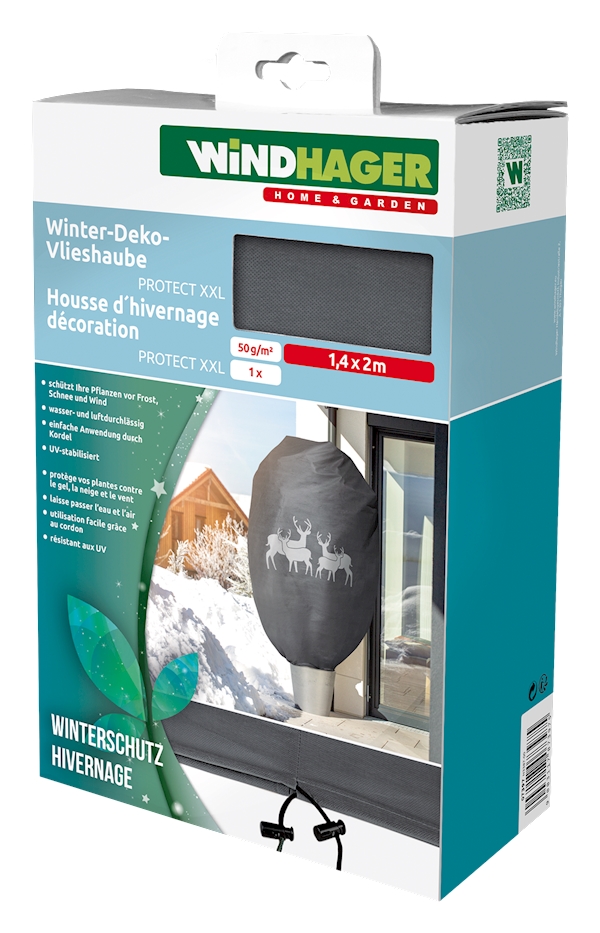 Schützt Ihre Pflanzen vor Frost, Schnee und Wind. Einfache Anwendung durch Kordel. Farbe: anthrazit mit Hirsch Motiv