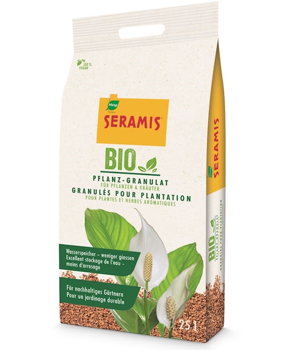 Seramis® Bio Pflanz-Granulat sind poröse Tonkörnchen als Ersatz von Erde beim Umtopfen und als Zusatz zu Erdmischungen. Seramis Pflanz-Granulat ist leicht und altert und verdichtet nicht. Auch beugt es dem Trauermückenbefall bei Zimmerpflanzen vor. Das Umtopfen ist einfach und jederzeit möglich. Es kann grosse Wassermengen aufnehmen, speichern und wieder an die Pflanze abgeben. Dabei sorgt es für das optimale Luft-Poren-Volumen. Es sorgt für kräftiges Wachstum.