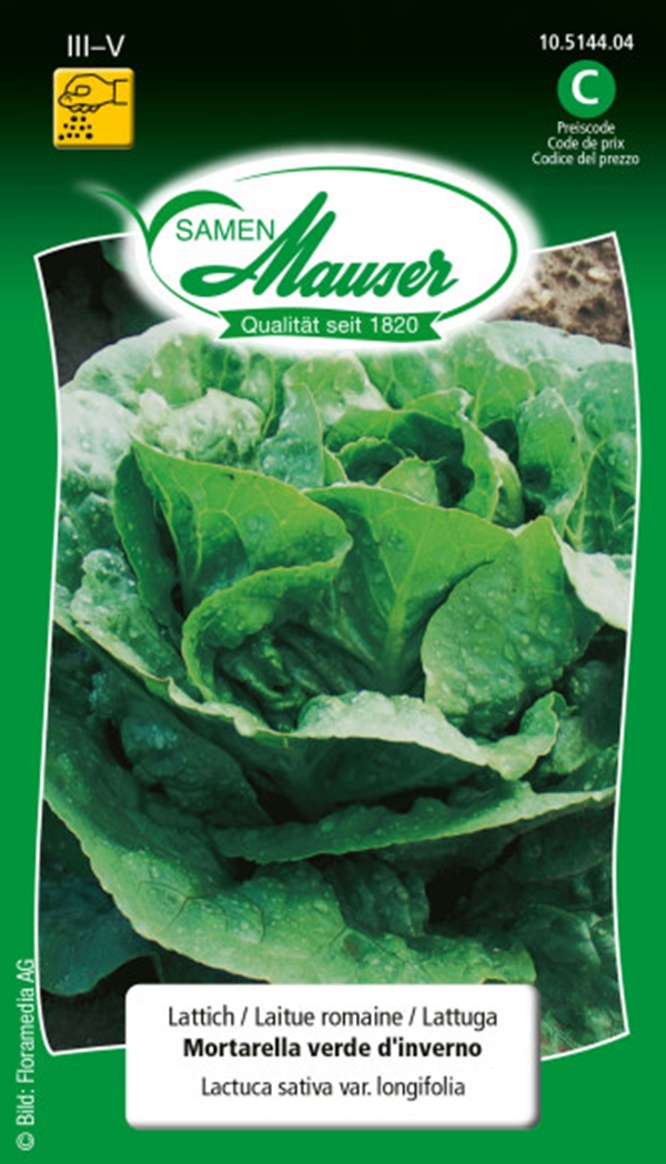 Sorte mit länglichen grünen Blättern, hellgrünes Herz mit weissen Adern. Bildet kleine kompakte Köpfe, die sehr zart und schmackhaft sind. Schwarze Samen.